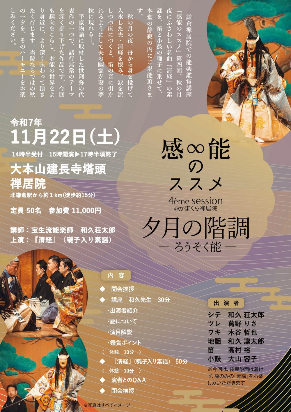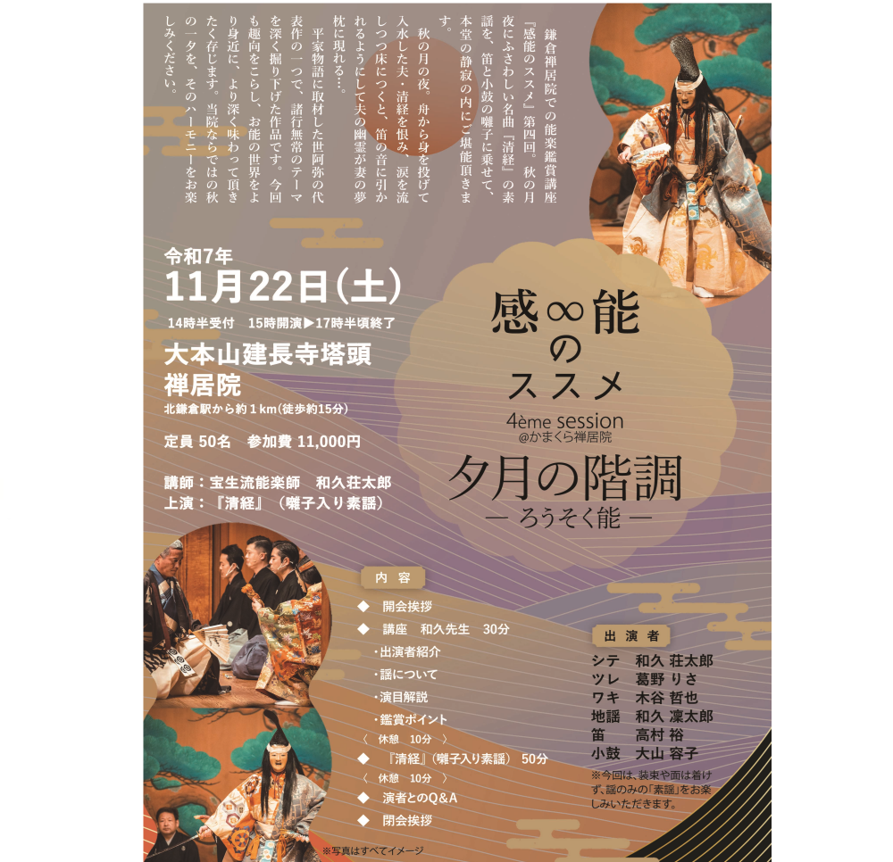 出発 11/22(土)14時30分受付 15時開演▶17時半頃終了 場所:北鎌倉 禅居院 現地集合・解散となります |